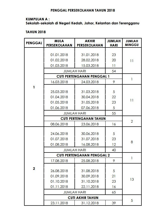 The malaysia public holidays 2018 calendar (jadual hari kelepasan am persekutuan & negeri 2018) below is useful for your next holiday trip planning and you have no more excuse not to buy overseas flight tickets during next airasia free seats / zero fares promotion. Jadual hari kelepasan am negeri tahun 2017. Panduan buat warga terengganu yang ingin mengetahui jadual cuti umum dan cuti sekolah terengganu tahun 2021. Kalendar cuti sekolah 2018 malaysia. Jadual hari kelepasan am bagi negeri pahang tahun 2020 ini telah dikeluarkan oleh bahagian khidmat pengurusan, pejabat setiausaha kerajaan negeri pahang, wisma sri pahang kuantan.